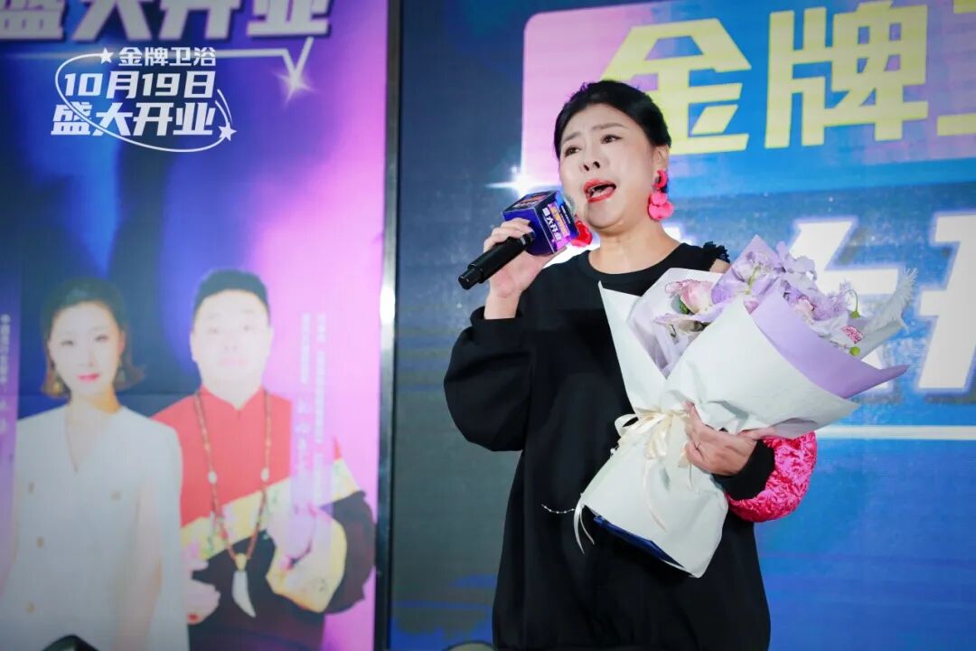 紧接着,另一位流行女歌手王娅登场,以其独特的声线和倾情的歌唱,持续将现场氛围保持在高位。随后,金牌卫浴陈总现场重磅公布了开业限量政策,与王娅一同亲笔签名爆款产品的惊爆价格,引发现场一轮又一轮的抢购高潮。王娅随后进行新一轮互动抽奖,再次为消费者送上层层福利,现场签售捷报频传,持续释放品牌势能!