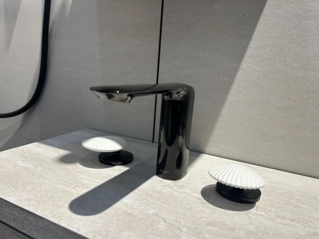 灵感源于广东·珠海的标志性建筑“日月贝”,华艺研发团队借其天然的曲线与柔和色彩,匠心转化为卫浴产品设计。在细节上钻研,利用人体工学设计,将把手位弧度精准贴合手掌,使用户在使用过程中指尖如轻抚海浪般温润,在日常家居生活中也能传递自然、灵动的生活美学 。