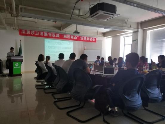 此次活动在法恩莎卫浴销售部邓经理对黑吉区域的上半年的总结报告中拉开序幕。邓经理对于黑吉区域上半年的销售情况作出总结以及对下半年作出详细规划。总结规划出最适合黑吉区域的厕所革命可执行方案。