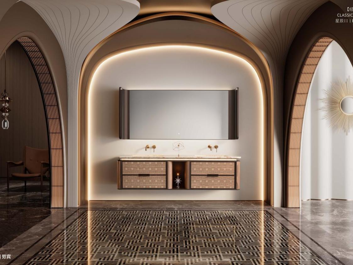 “库里南二号”的诞生,堪称这一思维的极致体现。劳宾没有简单将“钻石”作为营销噱头印在宣传册上,而是真正拆解传奇钻石的切割工艺:从切割角度的数学计算,到水晶与柜体的力学适配,再到光线折射下的视觉呈现,每一步都复刻了钻石从原石到璀璨宝石的蜕变过程。当奥地利高奢水晶与柜体以精准的角度结合,浴室空间里便有了“可触摸的钻石光泽”,这种将工艺逻辑而非符号标签作为价值核心的做法,彻底区别于“贴个水晶贴纸就叫高端”的行业乱象。