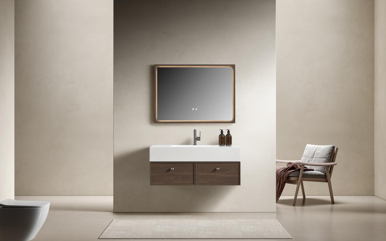 随着消费者对卫浴空间的需求从 “基础功能” 转向 “个性化体验”,三木和府在材料、功能等多维度持续创新,以更灵活的解决方案适配不同场景需求。在材料创新上,品牌除了深耕实木材质,还探索将岩板、长虹玻璃等现代材料与实木结合,如在柜体门板中嵌入长虹玻璃,既保留实木的温润质感,又增添通透轻盈的现代气息;在功能创新上,针对浴室收纳痛点,设计分层抽屉、侧拉篮、镜柜隐藏收纳等多元收纳结构,同时融入智能元素,如镜柜搭载防雾功能与智能照明,满足现代生活的便捷需求。