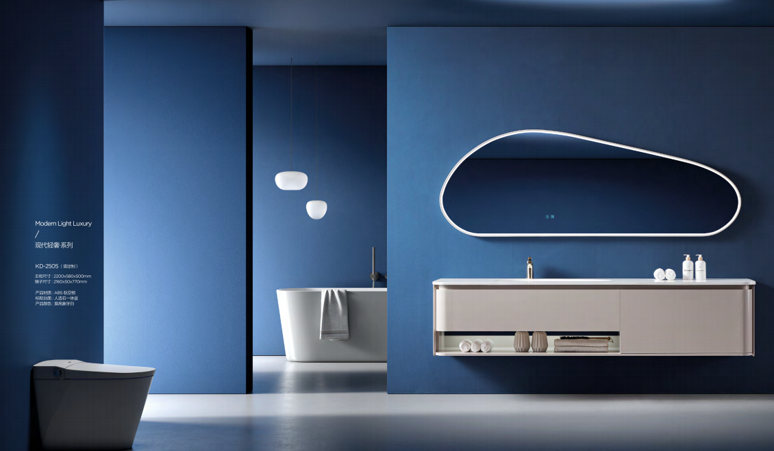与新锐复古设计师联名的“摩登复古系列”,则融合了20世纪50年代的复古元素与现代设计,演绎出独特的摩登格调。该系列的浴室柜采用弧形线条设计,柜体为墨绿色,搭配金色的五金件,复古韵味十足;镜柜为椭圆形,边框采用金色金属材质,搭配复古风格的灯泡,营造出温馨浪漫的氛围;水龙头和花洒则采用复古的造型,表面为古铜色处理,细节处彰显品质感。该系列产品一经推出,便受到年轻消费者的喜爱,成为网红卫浴产品。