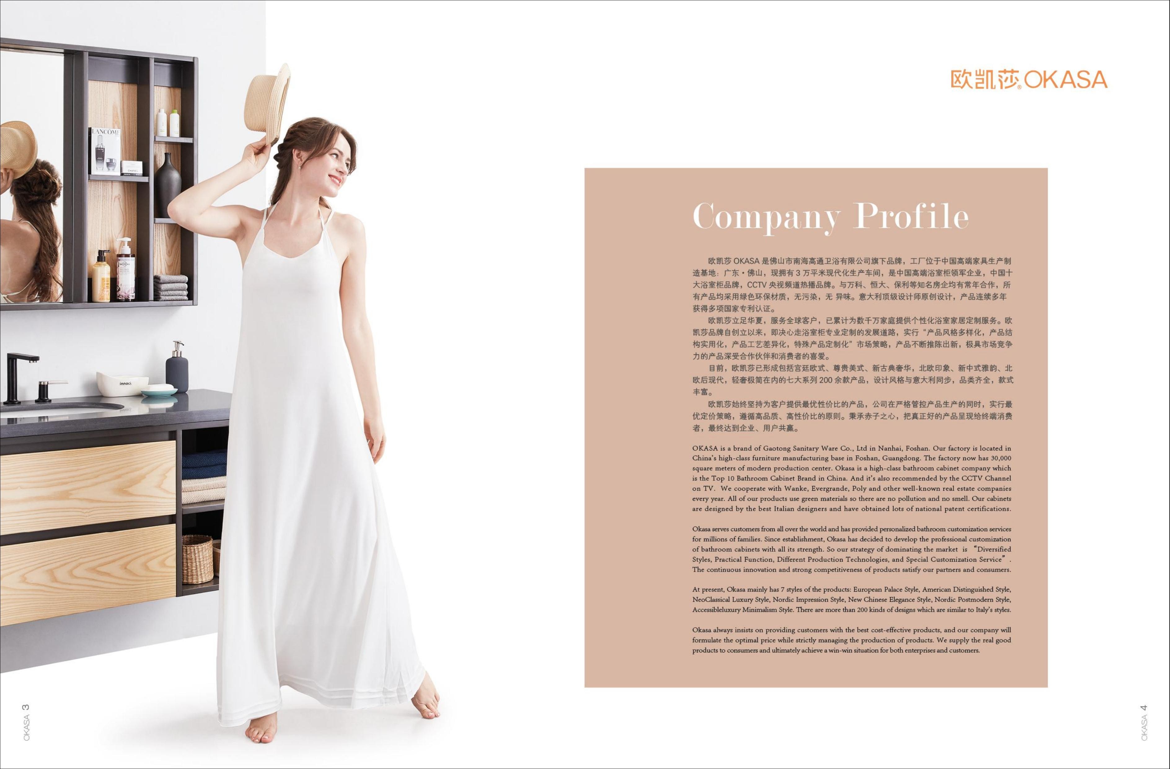 许总:欧凯莎对整个浴室柜行业有一次带动升级的贡献。在7、8年前,市面上流行的浴室柜基本是不锈钢的或是板式柜,欧美的也有,但相对较少。消费者的认知基本停留在买一套洗手盆浴室柜就是两三千、三四千的事。面对中高端市场的空白,一开始欧凯莎就定位高端市场,直接做欧式风格,也包括新古典、奢华的。当时我们一套柜子最贵能卖四五万,一般的也能卖到一万以上。