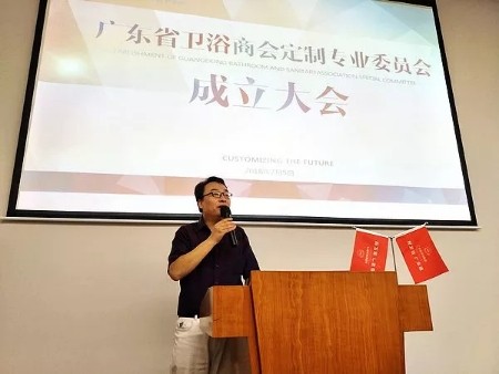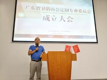 广东省卫浴商会定制专业委员会成立大会在佛山家博城D座八楼拉开帷幕。卫浴商会秘书长张书儒首先对大会致辞,广东省卫浴商会定制专业委员会以定制化发展思维推动中国卫浴行业创新提升。致力帮助广东卫浴定制发展提供行业新动力,反哺广东各个卫浴企业的倾力支持,共同创造更具前景的定制卫浴新未来!