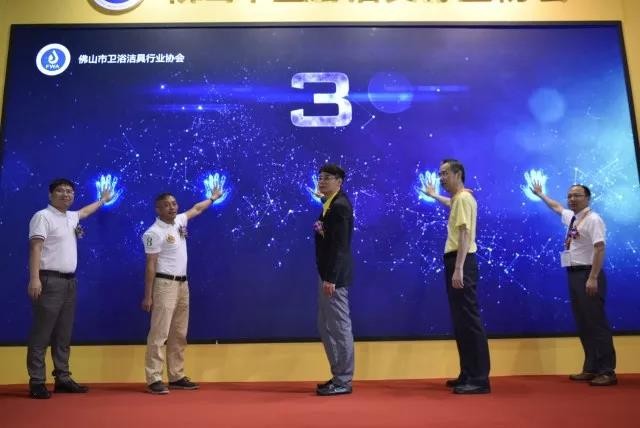 启动嘉宾佛山市卫浴洁具行业协会会长朱云锋先生、中国建博会负责人华谦生先生、佛山浴室柜联盟会长张爱民先生、中国建材市场协会卫浴分会、佛山市卫浴洁具行业协会秘书长刘文贵先生、朝阳卫浴副总经理邓书宇先生上台共同启动第二十届中国建筑装饰博览会佛山卫浴展团。伴随着热烈的掌声!伴随着慢慢的祝福!佛山卫浴展团卫浴展团正式启动,各位参展企业一定会收获满满!