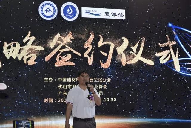 广东蓝洋科技有限公司董事长肖总表示很感谢协会,非常具有凝聚力、具有活力的一个平台,蓝洋杯已经成功举办了二届,今天再次签约,希望在协会的关怀和指导下为卫浴企业做更好的服务,把产品做的更好!