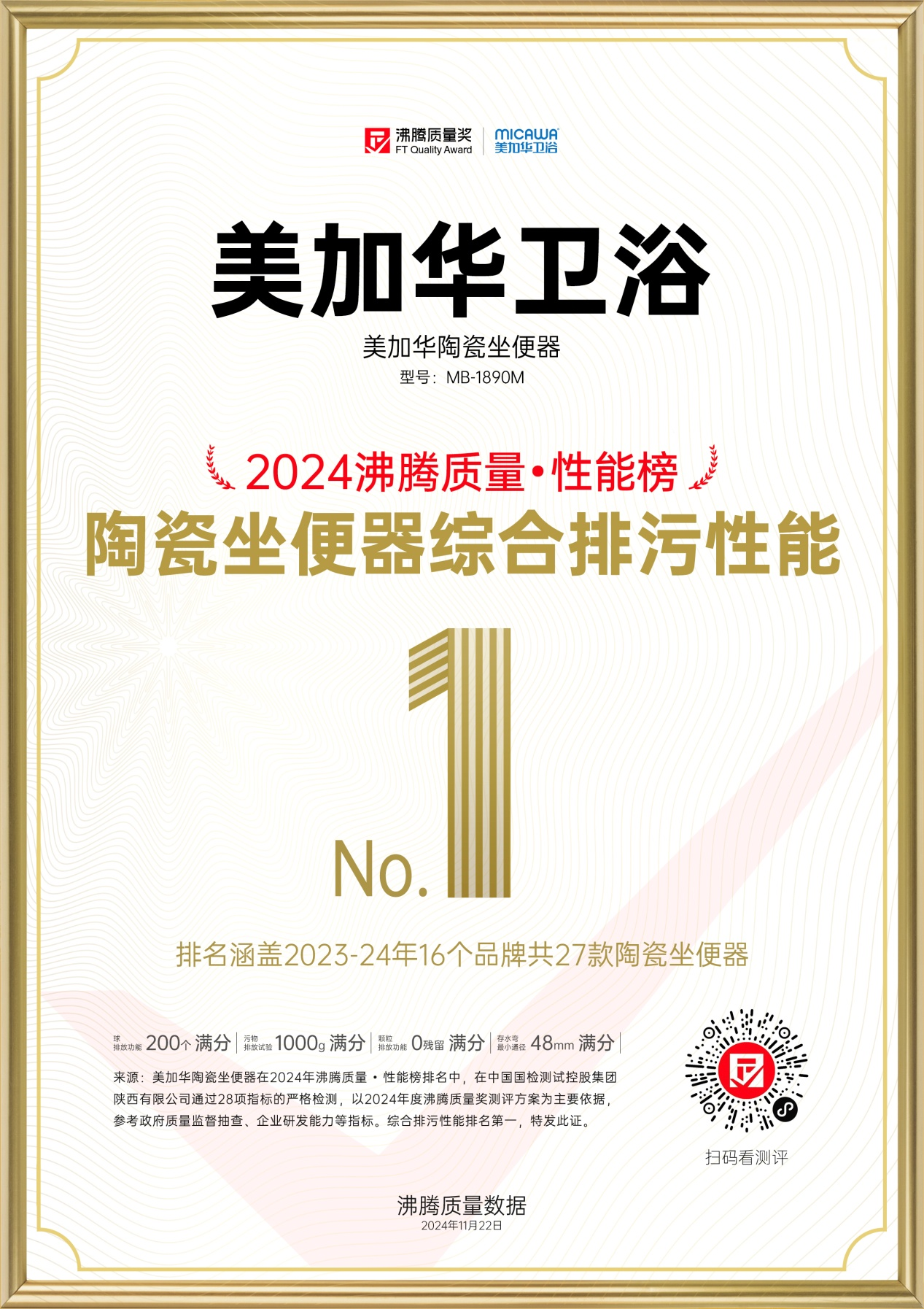 2025年,面对厨卫行业展会格局变化、渠道分流等行业新形势,美加华卫浴审时度势优化市场布局策略,在行业核心展会中实现品牌实力的集中彰显。5月27日,在上海厨卫展沸腾质量奖颁奖中,凭借卓越的产品性能与过硬的质量,一举斩获“节水标杆奖”“冲水静音奖”“防溅优+奖”三项殊荣。沸腾质量奖以严格的测评标准、权威的检测机构以及基于真实数据的评奖方式著称,含金量极高。
