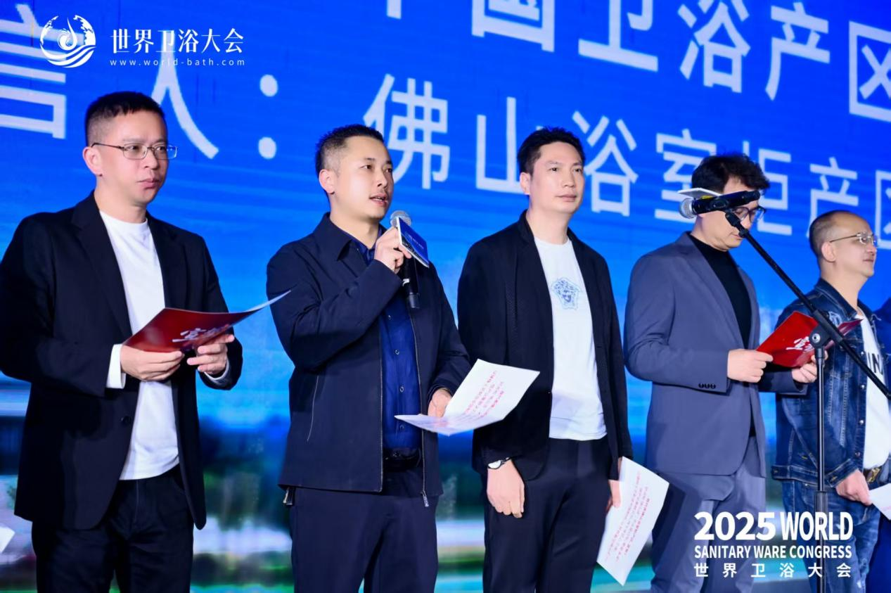 这两项荣誉的双重加冕,既是世界卫浴大会对圣梵木匠心坚守、原创实力与市场认可度的高度肯定,也是行业、设计师与消费者对其高端定制价值的一致认可,充分印证了圣梵木“品质+设计”双驱动发展模式的成功,彰显了其在浴室柜高端定制赛道的引领地位。会上,总经理张立鸿作为佛山浴室柜产区高端定制领域的代表,与一众企业家共同登台宣读《佛山浴室柜宣言》,以品牌发展理念为产区高端化发展发声,既展现了圣梵木深耕极简实木定制的匠心积淀,更向全球传递了佛山浴室柜产区在高端定制赛道的原创实力与美学追求,为“好浴柜,佛山造”IP注入了独特的高端美学基因。