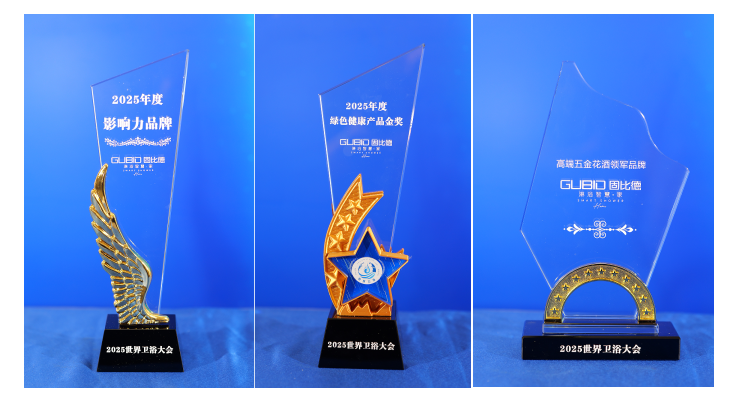 作为当之无愧的头部五金卫浴品牌,固比德的核心底气,源于近十年的深耕积淀与全链路的实力把控,更源于对行业发展趋势的精准洞察与引领。不同于普通五金卫浴品牌“重生产、轻创新”的发展路径,固比德自创立以来便锚定头部定位,以“卫浴五金奢侈品”为发展方向,将核心精力聚焦于五金卫浴核心领域,从研发、设计、生产到品控、服务,构建起全方位的核心竞争力,逐步成长为行业公认的头部标杆,更在2025世界卫浴大会上一举斩获“2025年度绿色健康产品金奖”“影响力品牌”“高端五金花洒领军品牌”三项重磅大奖,以行业唯一三重荣誉印证品牌实力。
