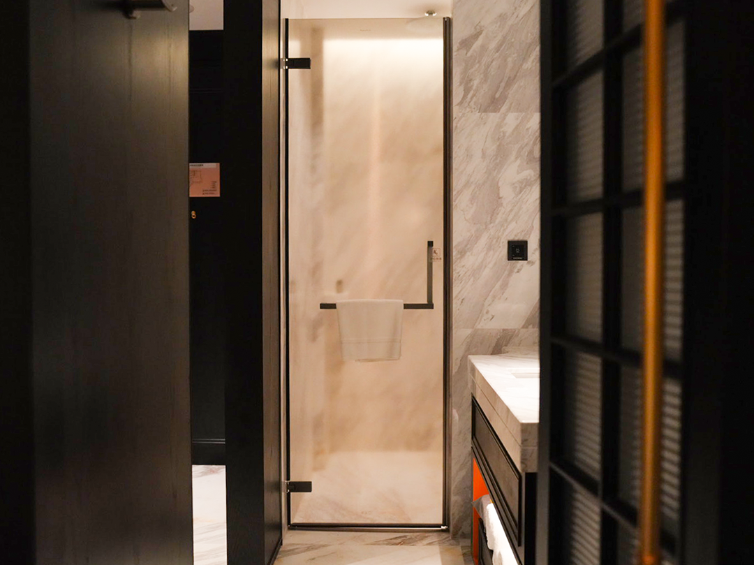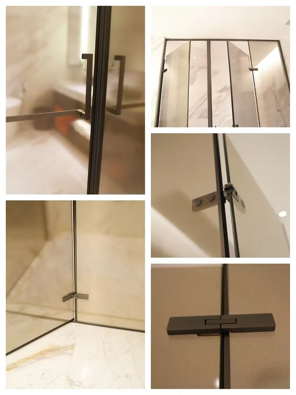 卫浴空间作为旅居体验中不可或缺的场景,其配置更需承载这份双重期待。莱博顿NPR系列淋浴房以精工细节作出细腻回应:15mm超窄实心边框构建出简练的视觉形态,内外开设计灵活适配不同动线需求;采用的茶色磨砂玻璃,呈现出静谧而温润的质感;自吸式磁条与内平喇叭口合页在静音密封与易清洁性上体现对使用体验的周全考量。外部横向拉手线条凝练,贴合掌心的弧度设计,内部竖向拉手便于淋浴时推拉动作提供稳固的着力点,便于顺畅开启,在细节中传递人性化的设计温度。