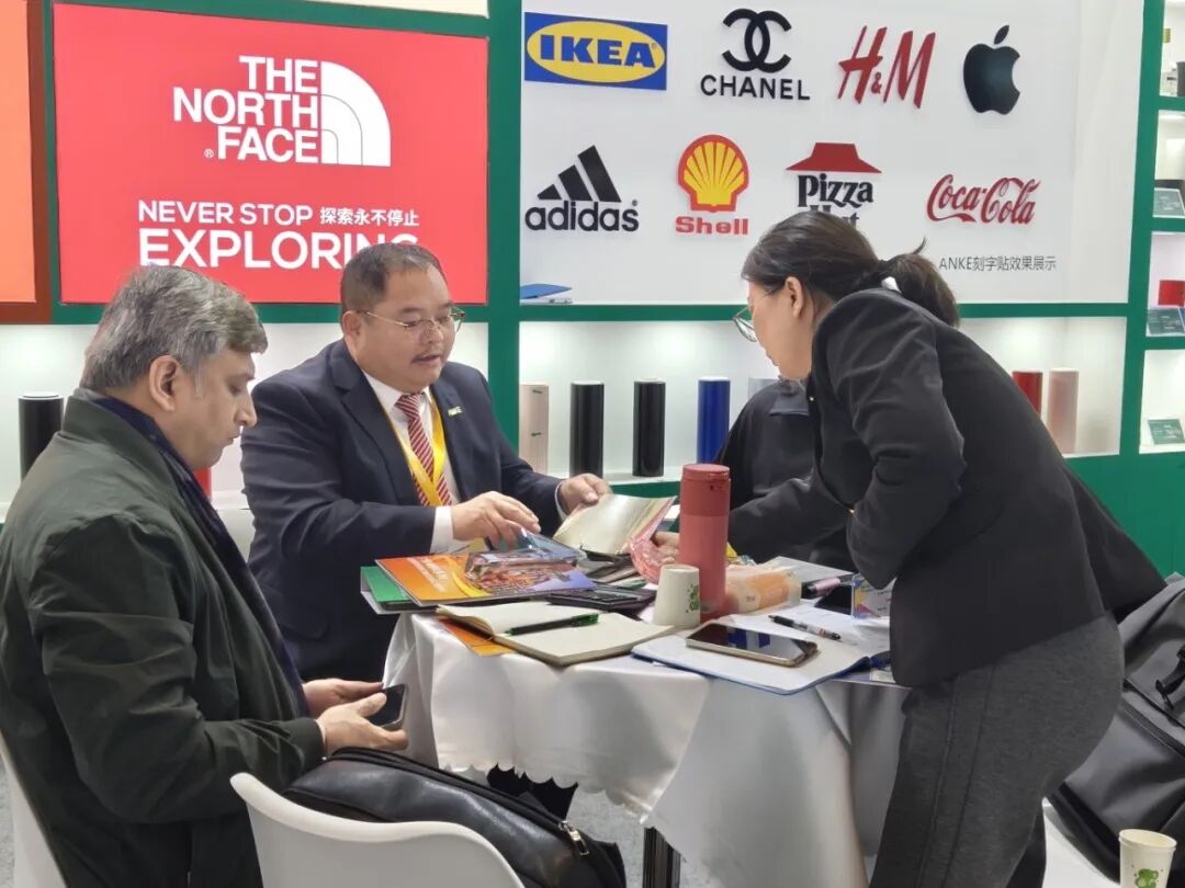 海外买家们对安可集团的新品表现出极高的评价和高度合作热情,“这是我今天看到的最完整的广告材料解决方案。”一位来自国外采购商在详细了解安可产品后赞叹道。