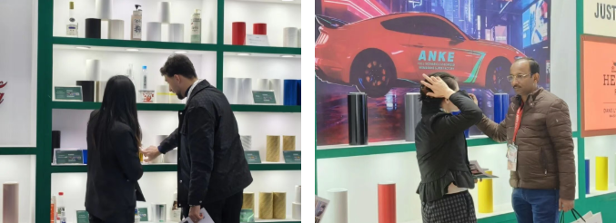 产品矩阵覆盖汽车、广告、包装、装饰等多领域应用场景,全方位满足全球客户多元化、高品质需求,现场海外买家频频驻足、称赞连连。
