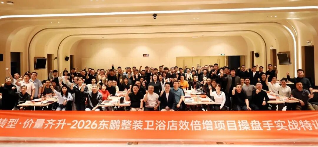 为全力冲刺Q1业绩目标、推动店效倍增、实现价量齐升,东鹏整装卫浴总部精心组织 2026开年首场店效倍增特训营,于2月28日—3月1日圆满举办。本次特训汇聚全国百位精英教练齐聚一堂,大家以空杯心态深耕专业、精进技能,围绕门店运营、业绩提升、团队管理等核心内容系统学习。全体参训人员目标一致、凝心聚力,将以更专业的能力、更清晰的打法、更高效的执行,赋能终端、深耕市场,全力冲刺Q1目标,为全年业绩增长打下坚实基础!