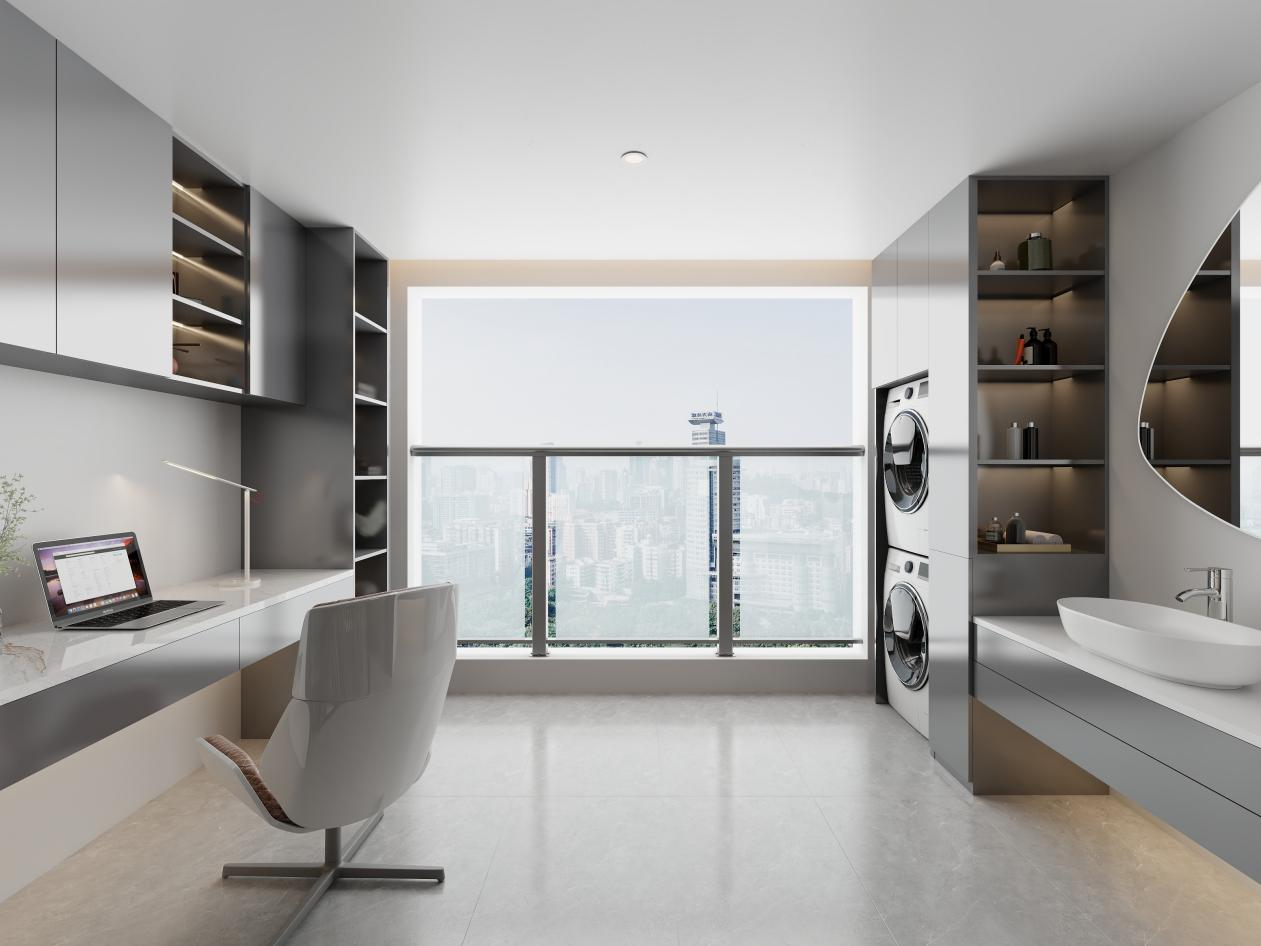 结构设计上,采用蜂窝板填充的承重结构,借鉴航空级仿生六边形蜂窝芯技术,实现 “超强承重 + 极致轻量化” 的精妙平衡。数据显示,该结构重量较传统实心铝板减轻 60%,承重能力却显著提升,既能轻松承载洗衣机、烘干机等重型家电,又大幅降低柜体自重。轻量化设计让阳台空间布局与改造更加灵活,无需额外加固墙体,适配各类户型阳台安装需求。