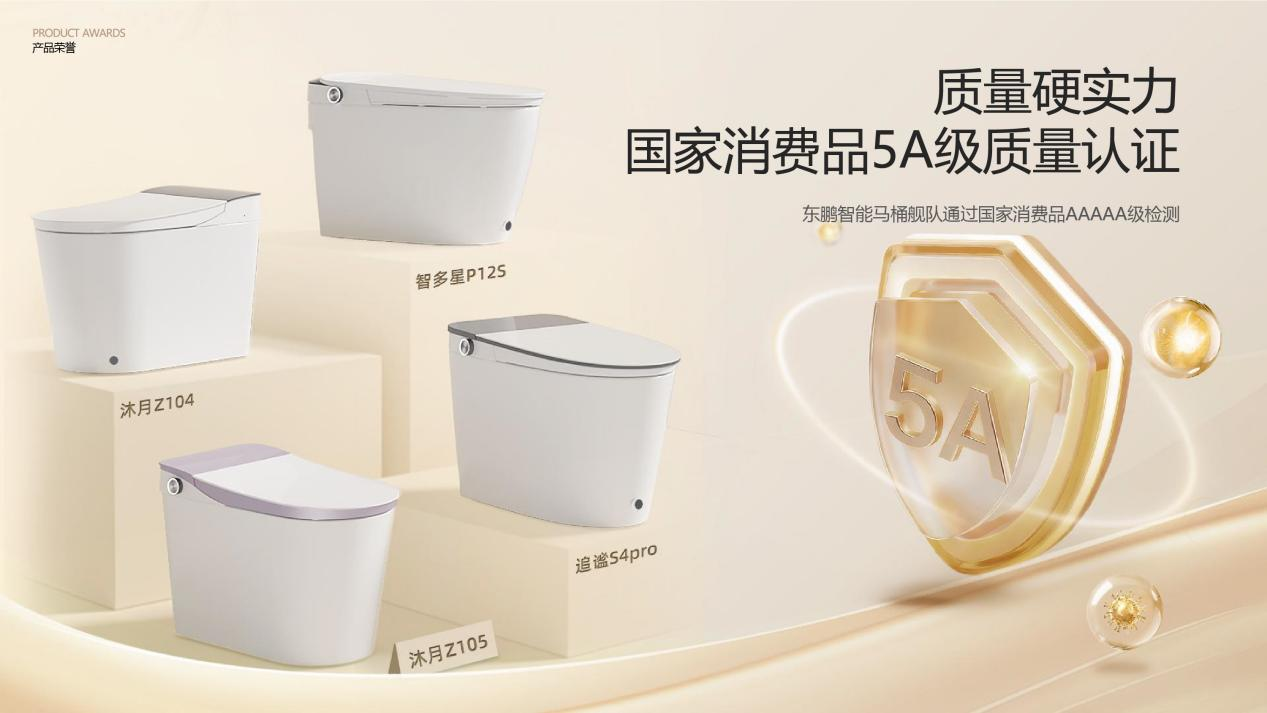 官方资料显示,东鹏旗下多品类产品已获得中国绿色建材产品认证、CIAA抗菌标志及沸腾质量奖等权威认可,其明星舰队系列智能马桶全面通过国家标准消费品质量分级最高等级5A级检测,成为行业少数获此殊荣的品牌之一。