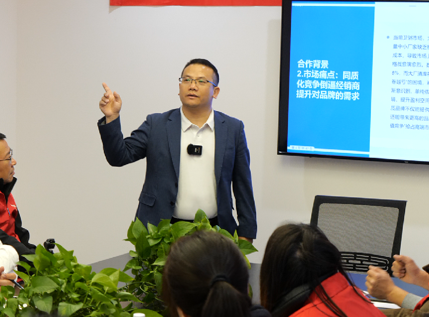 随后,本次活动“推动官”——卫浴新闻总经理高声伟分享了他对目前市场的看法,并详细解读本次新品首发直播的活动规则、流程安排与核心要求。高总结合自身丰富的行业经验为美橡坊团队带来了全面细致的讲解,为全体参会人员理清了工作思路、明确了执行标准。他强调,本次直播活动注重细节、追求实效,每一个环节都关乎活动成败,希望全体人员严格按照规则执行,密切配合、协同发力,确保直播过程流畅有序、亮点纷呈,让更多客户了解美橡坊新品优势,感受品牌魅力,助力本次直播活动实现流量与销量的双重突破。