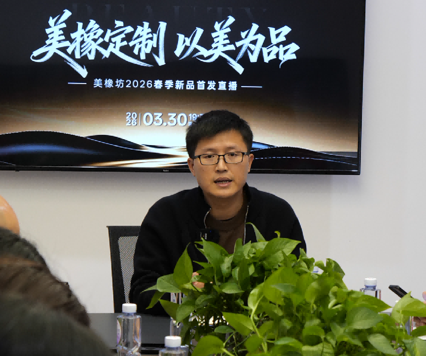 致辞中,陈总深入传达了本次活动的核心思想:以“美橡定制,以美为品”为初心,以新品为核心、以服务为支撑、以直播为载体,将高品质、高颜值、高性价比的春季新品精准传递给每一位客户,同时借助直播的力量,深化品牌影响力,赋能终端发展,实现厂商共赢。他号召全体参会人员,要以高度的责任感和使命感投入到本次直播筹备工作中,心往一处想、劲往一处使,查漏补缺、精益求精,以最专业的状态、最饱满的热情,全力以赴完成本次直播任务,用实干与担当书写美橡坊新的辉煌。陈总的致辞既饱含期许,又充满力量,让在场每一位人员备受鼓舞、倍感振奋,进一步坚定了打赢本次新品直播攻坚战的信心与决心。