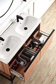 杰美尼系列在追求简约美的同时,还将大抽屉与置物层板的完美结合,干湿分离的储物方式,让生活用品放置更加合理。强大实用的收纳功能,时尚简洁,而又经久耐用,有效延长浴室柜的使用寿命。还能根据实际需求为你私人订制,自由组合,删繁就简,体现无微不至的人文关怀。让你在亲密无间的关系中,又有着专属的收纳空间。