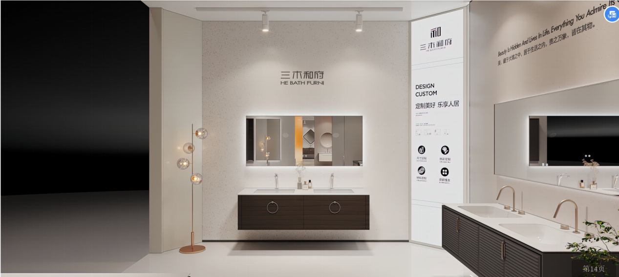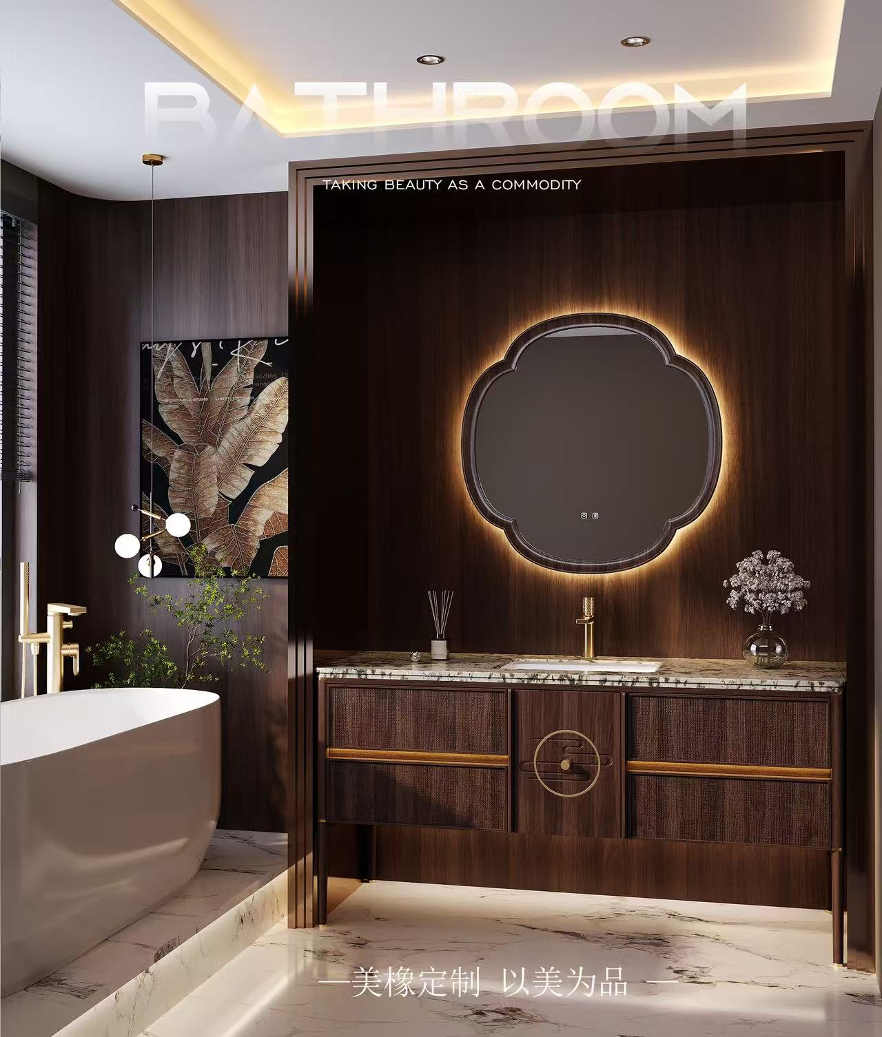 企业概况:三木和府创立于 2013 年,总部位于成都,是专注 “新中式实木浴室柜” 的专业品牌,主打 “中式美学、实木匠心、文化质感”,将传统中式元素与现代卫浴功能结合。核心优势: