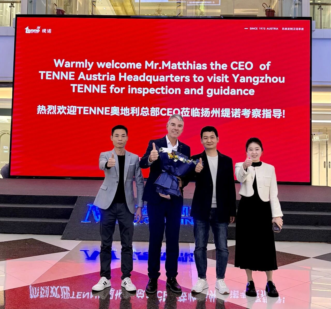 At the grand event, Mr. Matthias Mag Phil Birkner, Chief Executive Officer of TENNE Austria Headquarters, Mr. Longquan, Sales Director of TENNE Austria Asia-Pacific Operations Center, and other guests and leaders gathered to attend the ribbon-cutting ceremony together, witnessing alongside the attendees the deep integration of European bathroom aesthetics with the cultural elegance of Yangzhou, and sharing in this cross-regional feast of aesthetics.