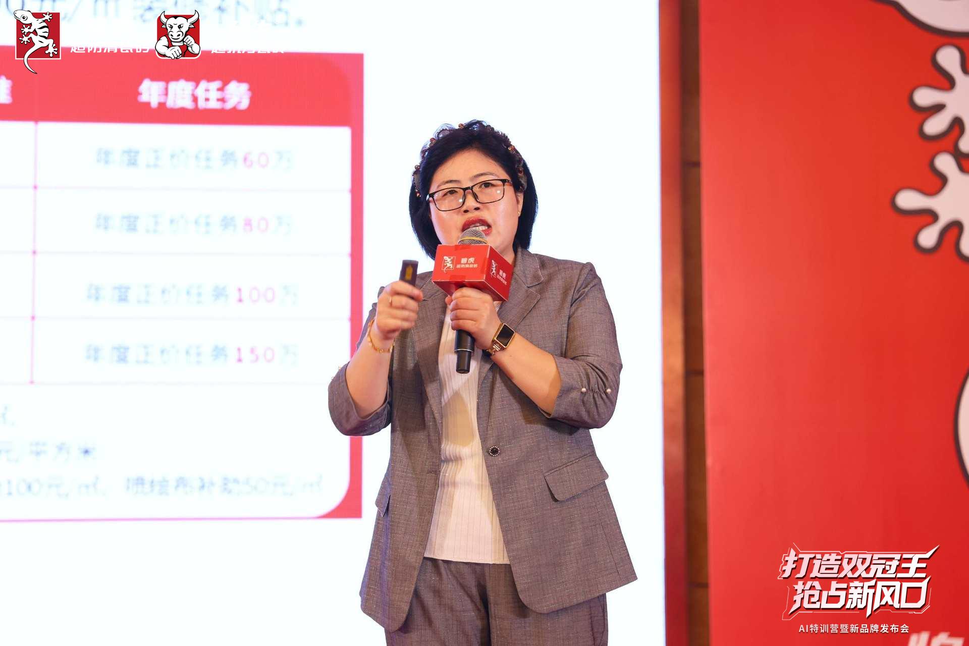碧虎集团总经理高玉秀聚焦“终端创富”,重磅发布了劲牛超抗污瓷砖全维度销售赋能体系与本次发布会专属招商政策。她提出“好产品打开市场,好赋能共赢未来”,对于经销商伙伴而言,优质的产品是基础,全方位的营销帮扶、政策支持、渠道赋能,才是长久盈利的保障。劲牛将为经销商提供360°立体营销帮扶、全渠道获客赋能、一站式运营支持以及重磅招商红利。同时,品牌还将引入AI数字化工具,开展专属AI赋能培训,助力经销商高效运营、精准获客,真正实现“开店即盈利”的财富承诺。