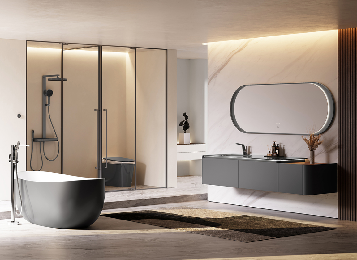 “传统浴室柜只是用来放毛巾、牙刷的,但高端用户需要的是健康管理。”蔡军介绍道,品牌近期首发的“睿享智能浴室柜”就是这一理念的集大成者。它不再是静态家具,而是通过AI技术,为用户提供健康监测、美妆建议等主动服务。