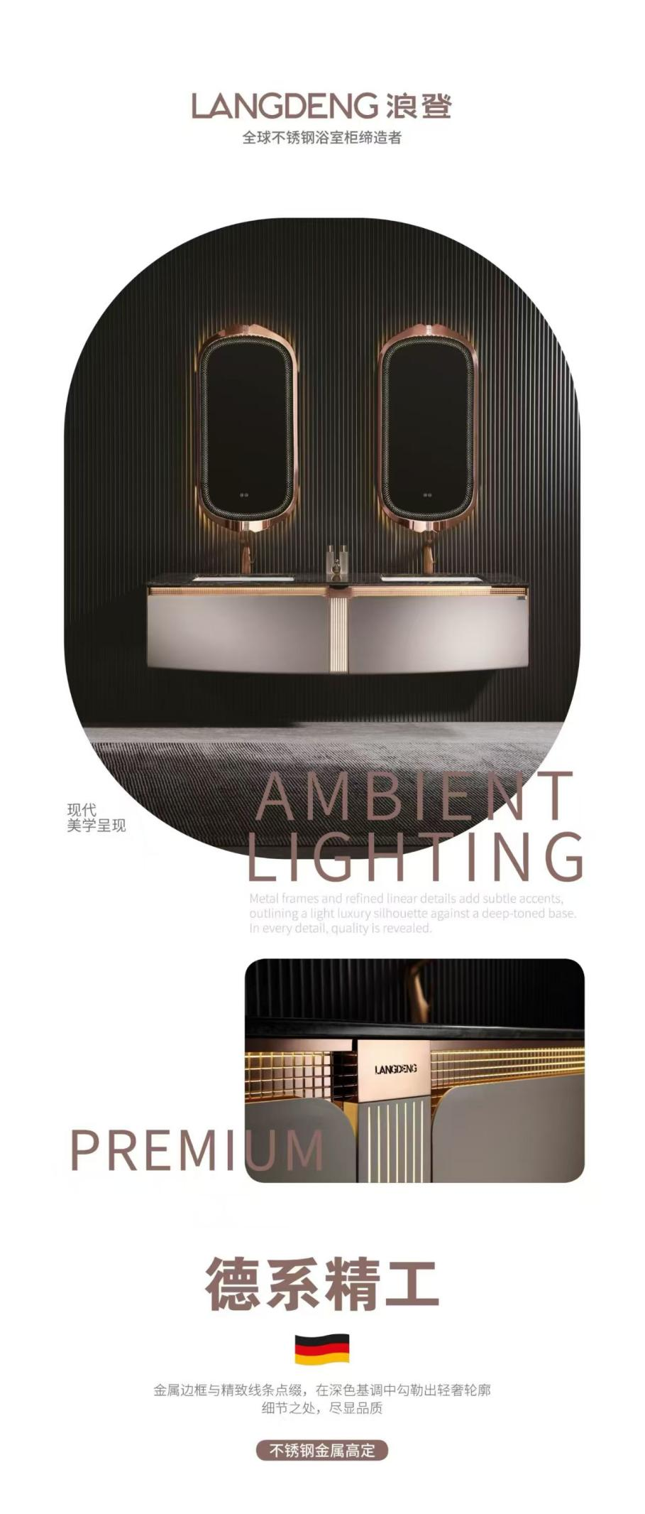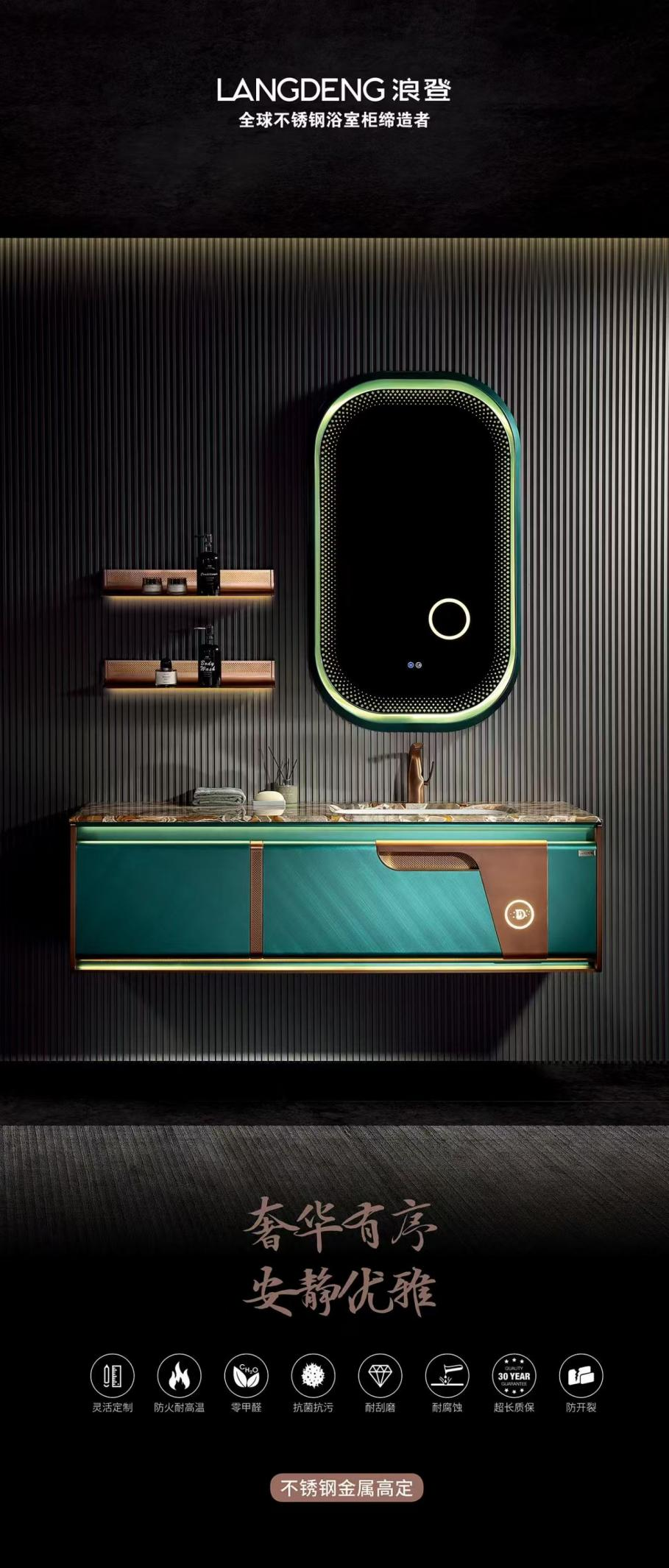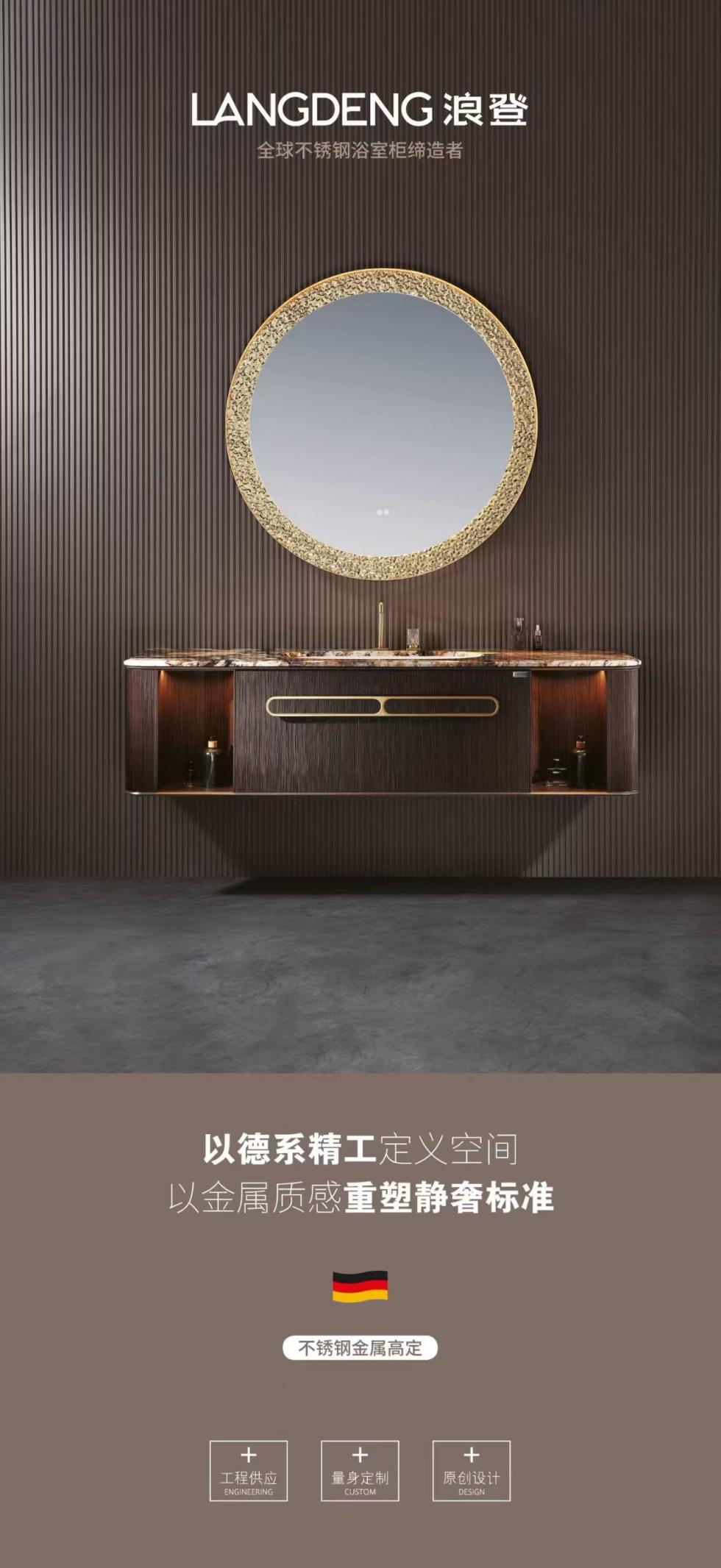 原创的生命力,在于设计与工艺的深度融合。长久以来,不锈钢产品给人“冰冷生硬”的工业感,浪登以设计为笔、工艺为墨,让金属材质蜕变为有温度的家居精品。设计上,浪登组建专业原创团队,每年推出多个创新产品系列,适配主流装修风格,融入分层收纳、智能镜柜等人性化元素,提供个性化定制服务,兼顾实用性与美学性。