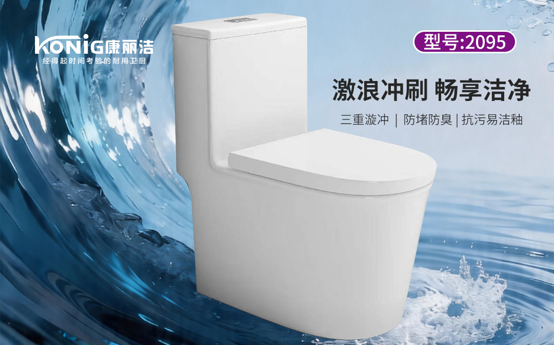 - 康丽洁 2095 马桶:圆弧形无唇设计,清洁无死角;内部优化防冻裂结构,大管道 + 双线暴风冲水口,冲刷强劲;高温自洁釉 + 静音冲水,好打理、更省心。