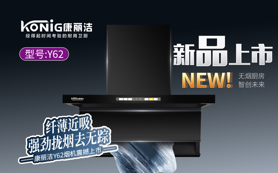 - 康丽洁 Y62 智能变频油烟机:变频增压、全域拢烟,免拆洗设计,强吸净烟,日常使用省心又安心。