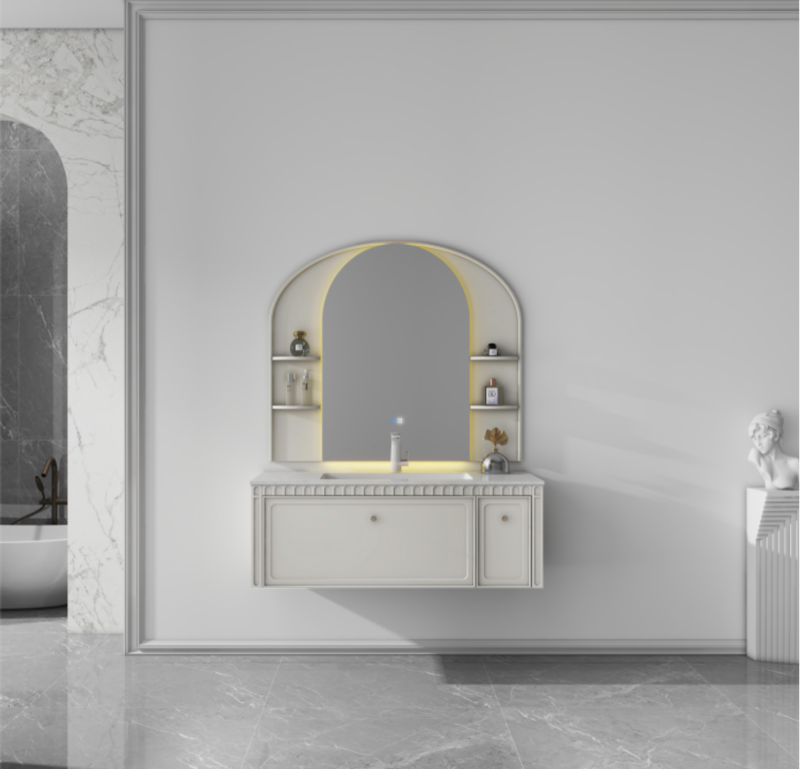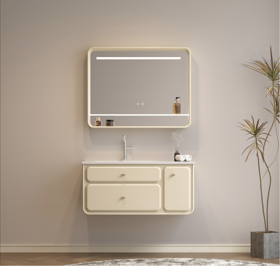其创新研发的木皮系列浴室柜,通过贴皮加烤漆的创新工艺,既完整保留了木艺的温润质感与自然肌理,又彻底解决了传统实木浴室柜易变形、易开裂的行业痛点,同时在外观设计上丰富多样,为产品赋予了更强的艺术感染力,成为众多追求生活质感家庭的首选之作。