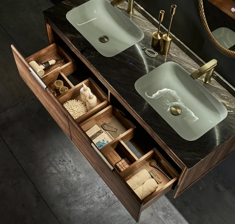 品质是木语轩的立身之本,十八年专注实木浴室柜领域,品牌严控基材与工艺,以硬核品质解决实木浴室柜防潮、变形、耐用性差的行业顽疾,筑牢国货品质底气。品牌精选乌金木、卡斯楠、红橡等优质实木,拒绝劣质板材与贴皮,保留天然木纹肌理,搭配环保净味油漆、一线品牌五金,从源头保障环保、耐用与质感,契合当代健康家居标准;同时融合传统榫卯工艺与现代智造技术,经多道防水、防潮、防开裂处理,优化柜体密封、漆面防护与结构加固,让实木浴室柜在潮湿卫浴环境中依然稳固耐用、不易变形、历久弥新,每一处精细打磨与精准拼接,都彰显着匠人匠心,实现美观与实用的双重兼顾。
