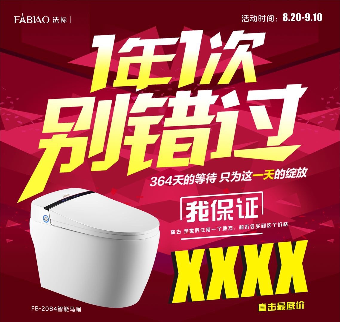 卫浴行业的智能时代已经全面来临,法标珠光卫浴顺应行业大势,在筹备了两年后,全新的智能马桶产品线于2018年初震撼上市,该批智能马桶产品在功能、外观、品质、以及价格上面具有强悍的市场竞争力,同时契合了法标在珠光卫浴方面的发展理念,开发出了多种与珠光卫浴全面配套的色系,在法标体系内称之为珠光智能马桶.在继年初的全国新品发布会重磅推广后,本次十一期间,法标再次重拳出击,拿出超越新品发布会的政策力度,于8.20-9.10期间推出覆盖全国的超强力度的促销活动,各位有卫浴需求的小伙伴福利来了,敬请期待哦!
