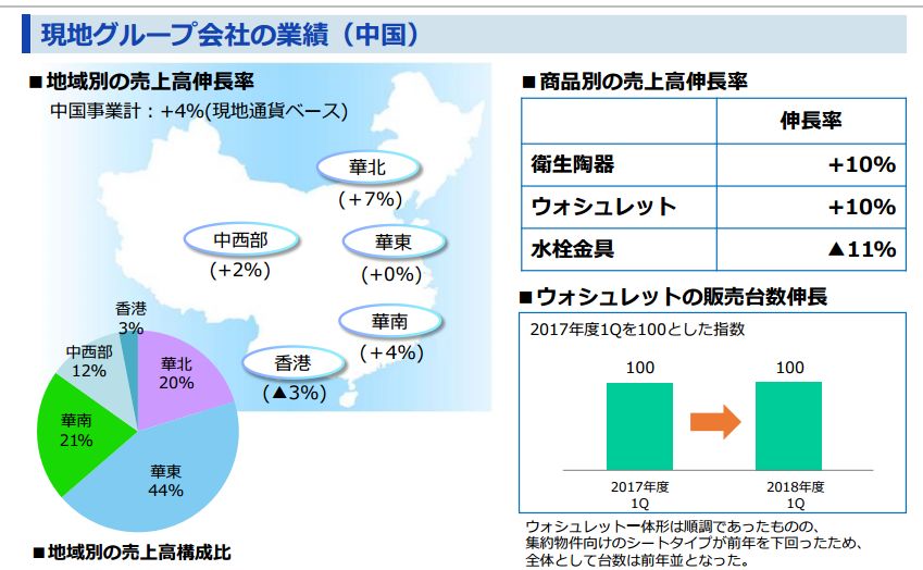 按本地币算,中国市场4-6月为TOTO贡献了人民币9.36亿元的销售额,增长4%;营业利润2.54亿元,增长5%。按产品分,卫生陶瓷和卫洗丽销售额分别增长10%,五金产品则下滑了11%。虽然卫洗丽销售额有所增长,但销量却与去年同期持平。TOTO表示,虽然一体式智能马桶销情向好,但智能盖板销量出现下滑,导致卫洗丽综合销量较去年没有增长。