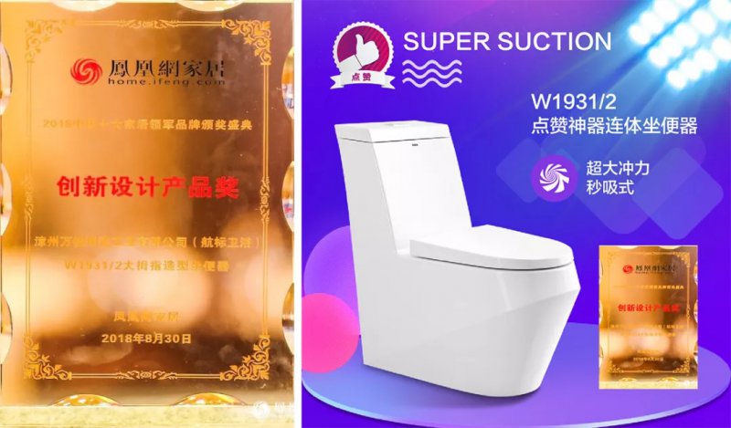8月30日下午,“改革只有进行时·2018中国家居行业峰会暨十大家居领军品牌颁奖盛典” 在广州粤海喜来登酒店举办。此次峰会对中国家居行业中的改革、创新上的突出品牌代表授予相关奖项。航标卫浴2018年全新推出的“W1931/2大拇指点赞坐便器”,凭借外观设计与功能技术的全面创新领先,斩获2018年度中国家居十大“创新设计产品奖”大奖,成为此次颁奖盛典上唯一获得此项殊荣的陶瓷洁具产品。