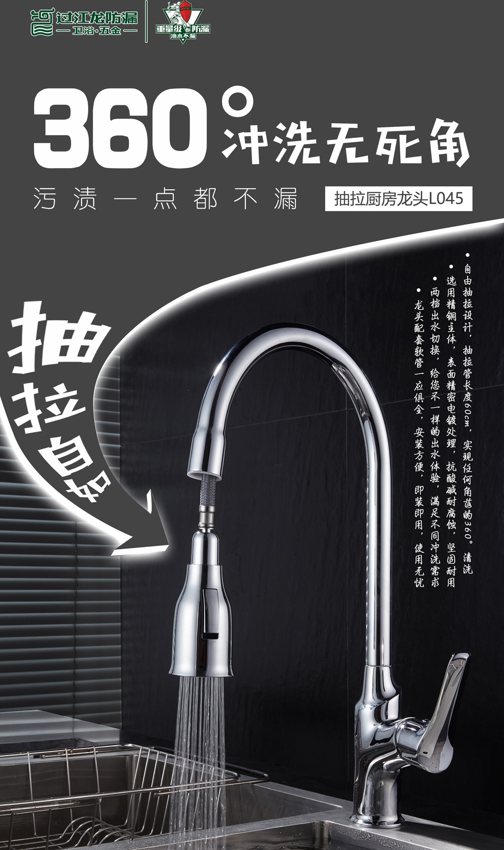 过江龙抽拉厨房龙头
