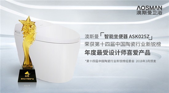 本次获新锐榜两个奖项,既是对澳斯曼卫浴极大的肯定,也是一种鼓励和鞭策。澳斯曼卫浴智能坐便器ASK025Z以其独特的双杆冲洗功能,获“年度最受设计师喜爱产品”奖项,这也是澳斯曼卫浴连续三年揽获此奖项。而获得“年度优秀产品”的澳斯曼卫浴一体坐便器AS12006以其大气外表及环保节能,得到消费者的信任和喜爱。