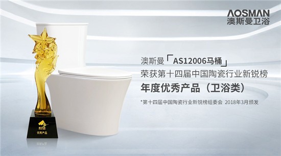 3月28日,第14届中国陶瓷行业新锐榜颁奖盛典于佛山隆重举行,澳斯曼卫浴获“年度优秀产品(卫浴类)”及“年度最受设计师喜爱产品”两项大奖。在3月,澳斯曼卫浴获得由中国质量检验协会颁发“全国卫浴行业质量领军企业”及“全国产品和服务质量诚信示范企业”两个奖项。