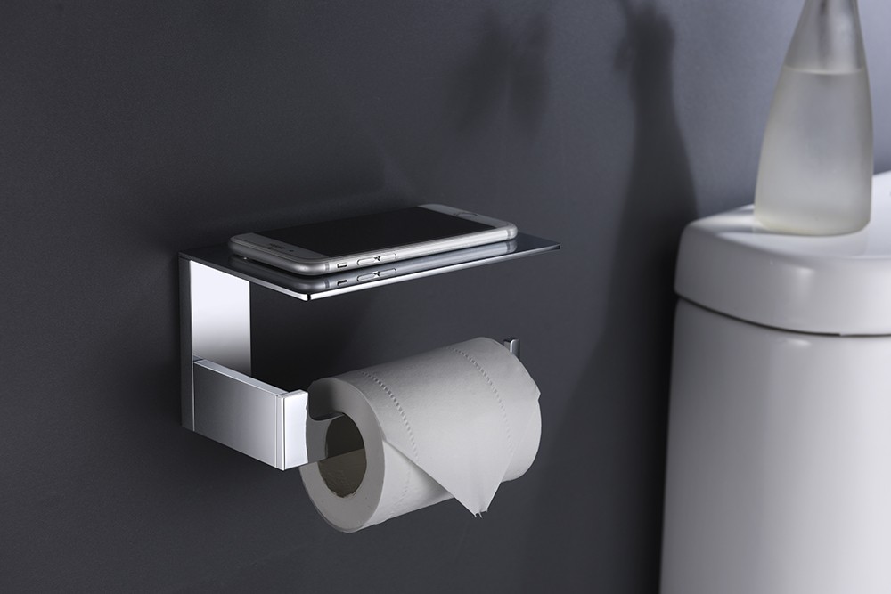 带平台厕纸架的设计,目的就是可以将抽纸架与储物结合。